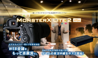 社員が自宅からパソコンを使ったテレワーク業務や、取引先との打ち合わせをWEB会議で行う機会が増えました。 通常 ノートブックPC・タブレット内蔵のカメラを利用して配信を行います。 MosnterX Lite2 を使って一眼レフカメラやビデオカメラをWEBカメラとして利用することでより鮮明でクリアな映像を、お手軽な価格で配信することができます。2021年 7月 21日(水)より、1920x1080 60fps 対応ビデオアダプター「MonsterX Lite2」発売開始致します。