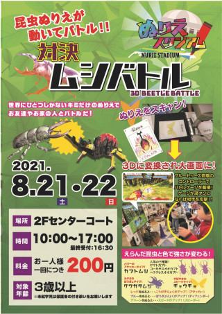 "ぬりえであなただけのオリジナル昆虫を作って対決できる体験。