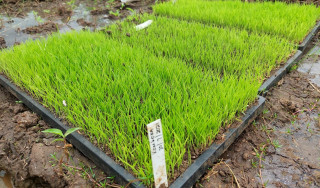 日本の田植機の性能は高く、中古在庫も多く流通している。そのため、輸出することは難しくはないが、田植機を輸出しただけでは田植えはできない。田植機を使った田植えには、「苗箱に育苗された稲苗(上記の写真)」が必要である。つまり、“育苗技術” も一緒に輸出しなければ、機械化はされない。今回、9月の田植えデモンストレーションに先駆け、事前に苗箱や育苗に関する資材を輸出。現地スタッフへの育苗指導も行った。現地での育苗も順調であり、いよいよ9月中旬より、ケニアで初となる「田植えの機械化」を行う。
