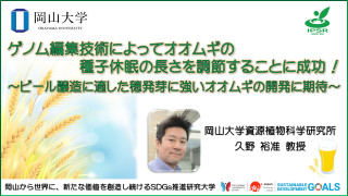 国立大学法人岡山大学(本部:岡山市北区、学長:槇野博史)の資源植物科学研究所(IPSR)の久野裕准教授、農研機構(国立研究開発法人農業・食品産業技術総合研究機構)およびドイツ・ライプニッツ植物遺伝作物学研究所の国際共同研究グループは、ゲノム編集技術CRISPR/Cas9(クリスパー・キャスナイン)法によって種子休眠性遺伝子への変異導入に成功し、種子休眠が長くなったオオムギを開発しました。