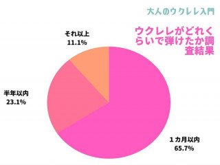ウクレレ情報サイト「大人のウクレレ入門」を運営するアップライト合同会社(大阪府泉南郡岬町、代表社員:立石秀彦)は、ウクレレがどれくらいで弾けるようになったかのアンケート調査を行いました。