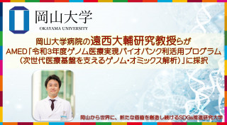 国立大学法人岡山大学(本部:岡山市北区津島中、学長:槇野博史)の岡山大学病院(本院:岡山市北区鹿田町、病院長:前田嘉信)ゲノム医療総合推進センターの遠西大輔研究教授らの共同研究課題が2021年11月1日 、国立研究開発法人日本医療研究開発機構(AMED)の「令和3年度ゲノム医療実現バイオバンク利活用プログラム(次世代医療基盤を支えるゲノム・オミックス解析)」に採択されました。