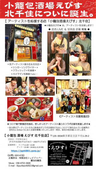 小籠包酒場えびす北千住店では、コロナ禍で活躍の機会を失ってしまったアーティ