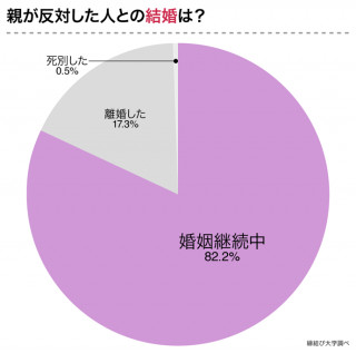 親に結婚を反対された人の82.2%が現在も婚姻中