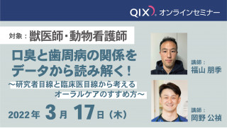 株式会社QIX(所在地:東京都町田市、代表取締役社長:生田目康道)は、QIXオンラインセミナー『口臭と歯周病の関係をデータから読み解く!~研究者目線と臨床医目線から考えるオーラルケアのすすめ方~』を開催いたします。