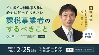 今回、基調講演に PwC税理士法人 村上 高士氏をお招きし、課税事業者の皆さまの立場で、インボイス制度導入後に何が変わり、どのような影響があるのかを解説。まだ十分に情報収集が出来ていない企業様にも、制度の理解から具体的な対応のイメージまでできるよう徹底解説します。