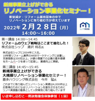 『リノベーション事業化セミナー』を2022年2月28日(月) に開催する予定です。