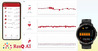 ResQ AIでライフログ測定に使用するウェアラブルIoT「ResQ Band」では、皮膚温、血中酸素濃度、呼吸数などを測定します。この中の「BP」値について、スマホアプリ「ResQ Live」、クラウド運用の「ResQ Platform」とのデータ共有を開始いたしました。