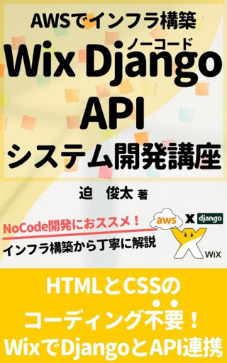 - AWSでインフラを構築して、ノーコードツールのWixで直感的にWebアプリの画面を作成してAWSで作成したインフラにPythonのフレームワークであるDjangoを導入して、DjangoのAPIを使ってWixとDjangoでシステム開発を行う為のノウハウを提供する電子書籍になります。 -