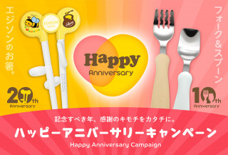 「エジソンのお箸(R)」は今年で20周年、「フォーク&スプーン」は今年で10周年を迎えます。はじめての子育てに奮闘するママ・パパ・ベビーに元気づけられ、ともに歩んできました。日頃のご愛顧に感謝して、この機会に期間限定の特別なキャンペーンを行います。