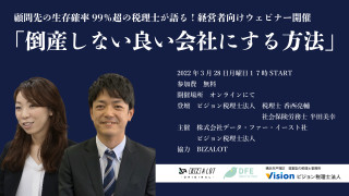 「でも、経営計画なんてどうやって作ればいいの?」「そもそも経営計画ってどんなもの?」「経営数字って難しそう」と思われたかもしれませんが、ご安心ください。このウェビナーではそんなあなたの疑問にお答えします。登壇するのは400件以上の顧問先を持つビジョン税理士法人の現役税理士。たった1時間であなたは自社が「倒産しない会社」になる方法を手にすることができます。