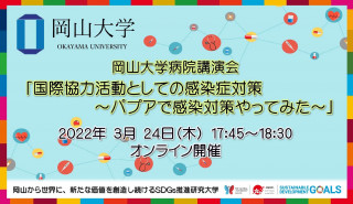 国立大学法人岡山大学(本部:岡山市北区津島中、学長:槇野博史)の岡山大学病院(本院:岡山市北区鹿田町、病院長:前田嘉信)国際診療支援センターでは、世界保健機関(WHO)の短期コンサルタントとしてパプアニューギニアで新型コロナウイルス感染症対策に従事した当院総合内科・総合診療科の萩谷英大医師より、現地での活動について、2022年3月24日(木) に「国際協力活動としての感染症対策~パプアで感染対策やってみた~」と題する講演会をオンライン(zoom)で開催いたします。