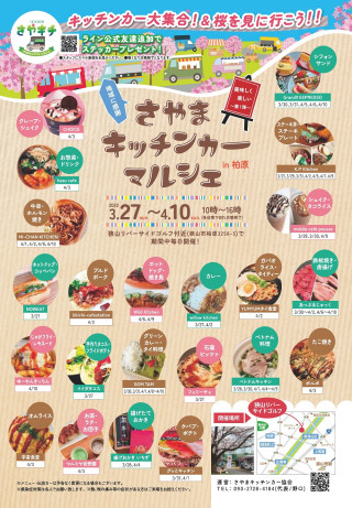 埼玉県狭山市を“キッチンカーの街”として盛り上げる「さやまキッチンカー協会」は、2022年3月27日 ~2022年4月10日 ~(2週間)の毎日、狭山リバーサードゴルフ脇土手沿い(狭山市柏原3258-5)で「さやまキッチンカーマルシェ」(略称・さやキチ)を開催します。