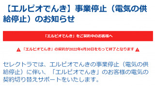 2022年4月30日 をもって、エルピオでんきの電気が供給停止となることに伴い、同社の電気を契約されている利用者におかれましては、4月中に新たな電力会社への切り替え手続きが必要不可欠となります。