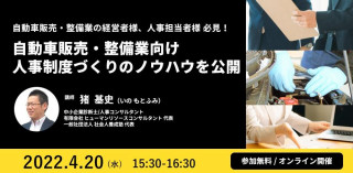 そこで、本セミナーではこのような悩みを解消し、人材の育成と定着を実現する“自動車販売・整備業向け”人事制度づくりのノウハウをご紹介します。