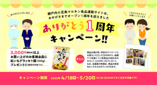 瀬戸内海に浮かぶ小豆島にありますマルキン食品株式会社では、この度自社通販サイト「瀬戸内小豆島マルキン食品通販サイト」がオープン1周年を迎えます。
