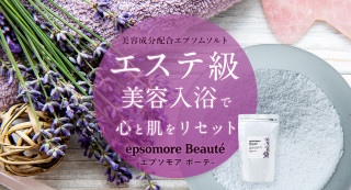エプソムソルトとは硫酸マグネシウムのことで、保湿や発汗などの温浴効果などで注目されている天然のミネラルです。「epsomore Beauté (エプソモア ボーテ)」は徳島県産のエプソムソルトに、コラーゲンやセラミドなど、肌にハリや潤いを与える美容成分と植物由来成分を配合。入浴しながらハリ・つや、整肌、冷え対策(※)などの美容ケアが期待できます。(※温浴・洗浄・保湿による効果)