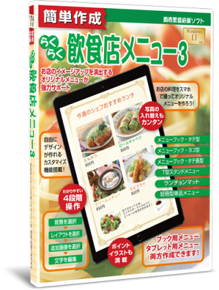 飲食店向けメニュー表作成ソフト 簡単作成らくらく飲食店メニュー3 を発売開始