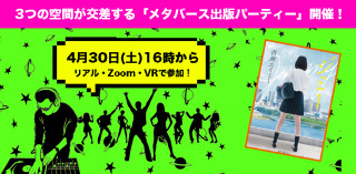 5月1日 発売となる小説「ジミー」の出版パーティーを、多次元実況システム「スパークス(開発コード名)」を使い、リアル空間とオンライン空間、そしてVR空間という<3つの空間>を融合させた、アフターコロナを象徴する3拠点ハイブリッド出版記念パーティーを開催します。