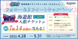 阪神高速道路は、YouTubeチャンネル阪神高速ドライブチャンネル「どらちゃん」と、阪神高速のTwitterが連動したフォロー&リツイートキャンペーンを開催します。