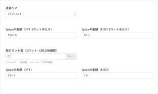 通貨ペアを選択するだけで、1pipsがいくらなのか、その場の為替を取得して、自動計算してくれます。