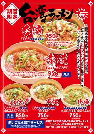 7/12~8/10、平日ランチ限定で『台湾ラーメン』を提供いたします