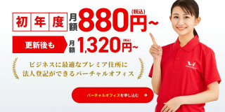 法人登記・住所利用プラン(初年度月額880円 次年度月額1,320円)