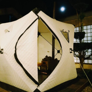 なんとか女湯でもロウリュができないか?と、安全面も含めて検討を重ね、この度、薪ストーブを使ったテントサウナを女湯露天風呂ゾーンに設置することとなりました。