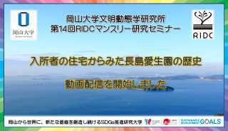 今回、 2022年7月20日(水) にオンライン開催した第14回RIDCマンスリー研究セミナー「入所者の住宅からみた長島愛生園の歴史」(スピーカー:松岡 弘之 岡山大学 学術研究院 社会文化科学学域 講師、パク ミンジョン 岡山大学 学術研究院 環境生命科学学域 特任助教)の録画配信を開始しました。ぜひ皆様にご視聴頂けますと幸いです。