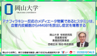 国立大学法人岡山大学(本部:岡山市北区、学長:槇野博史)学術研究院医歯薬学域の西堀正洋特任・特命教授の研究グループは、中国清華大学高尚澤博士との共同研究で、アレルギーやアナフィラキシー反応の重要な媒介因子であるヒスタミンが培養血管内皮細胞に働くと、細胞核内のHMGB1が細胞外へ放出されることを世界ではじめて明らかにしました。ヒスタミンによるHMGB1の放出反応は、4種類あるヒスタミン受容体サブタイプのうち、典型的なH1サブタイプ受容体を介しており、臨床でアナフィラキシーの治療に用いられるアドレナリンなどのカテコールアミンの添加で抑制されました。
