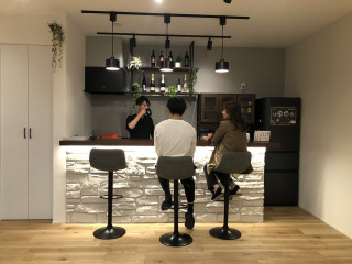 新オフィスには、一階部分にプロジェクター、カウンターバーを完備したフリースペースを設けております。