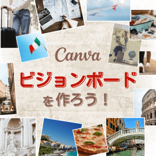 自分のしたい事や叶えたい夢を視覚化してコラージュしたビジョンボードを無料のデザイン作成ツール『Canva』を使用し作成します。