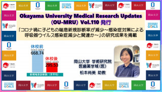 本号では、岡山大学学術研究院医歯薬学域(医)の頼藤貴志教授と松本尚美助教の研究グループの「コロナ禍に子どもの喘息新規診断率が減少~感染症対策による呼吸器ウイルス感染症減少と関連か~」の研究成果を紹介しています。