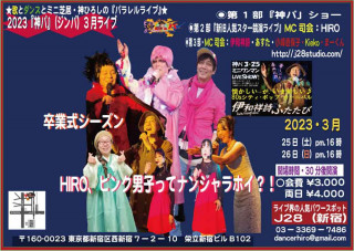 毎月新宿「J28」で開催の、歌とダンスのエンタメ『神パ』3月ライブで、「神ひろし」がピンク男子で寺尾聡の『ルビーの指環』に初挑戦する。