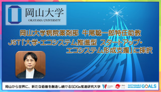 国立大学法人岡山大学(本部:岡山市北区、学長:槇野博史)の岡山大学病院薬剤部に所属する牛尾聡一郎特任助教が、国立研究開発法人科学技術振興機構(JST)の「大学・エコシステム推進型 スタートアップ・エコシステム形成支援(研究開発費:2,558万円)」に採択されました。