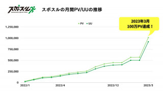 スポーツに特化した事業を展開する株式会社スポスル(東京都豊島区)が運営する、スポーツ専門WEBメディア、クチコミサイトスポスル+スポスルマガジンにて、2023年3月 の月間純ページビュー(自社サイト内のPV)が101万2146PVとなったことをお知らせします。