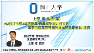 今後も本学は、強みのひとつである医療系研究分野の更なる強化促進を図り、研究力向上・イノベーション創出を加速させていきます。上原教授をはじめ、今後も地域中核・特色ある研究大学である岡山大学にご期待ください。