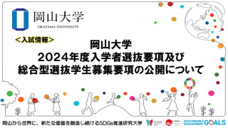 国立大学法人岡山大学(本部:岡山市北区、学長:那須保友)は、「2024年度入学者選抜要項及び総合型選抜学生募集要項について」、以下の通り2023年6月28日 にホームページで公開しました。