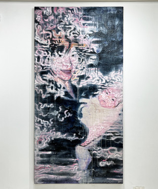 大石がアウラを捉えた写真(found photoやメディアから流れてくる映像をキャプチャしたもの)をベースに蜜蝋、油絵具等でレイヤーを重ねていくプロセスによって制作される。