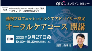 株式会社QIX(所在地:東京都町田市、代表取締役社長:生田目康道)は、オンラインセミナー 『動物プロフェッショナルケアアドバイザー検定〈オーラルケアコース〉』を開催いたします。
