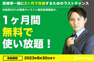 日本全国の受験生の助けに少しでもなれるよう英検コーチ一同尽くして参りますので、ぜひ1ヶ月間の無料キャンペーンのご応募お待ちしております。