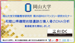 今回、2023年7月19日(水) にオンライン開催した第25回RIDCマンスリー研究セミナー「和歌山県磯間岩陰遺跡古墳人骨のDNA分析」(スピーカー:岡山大学 学術研究院 社会文化科学学域 清家 章 教授)の録画配信を7月20日 に開始しました。ぜひ皆様にご視聴頂けますと幸いです。