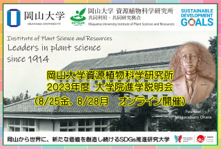 国立大学法人岡山大学(本部:岡山市北区、学長:那須保友)の資源植物科学研究所(倉敷市中央)では、大学院進学を検討されている皆様を対象に、オンライン大学院説明会を2023年8月25日(金) 、28日(月)に開催します。