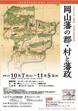 国立大学法人岡山大学(本部:岡山市北区、学長:那須保友)の岡山大学附属図書館では、令和5年度池田家文庫絵図展「岡山藩の郡・村と藩政」を、2023年11月5日(日) までJR岡山駅前の岡山シティミュージアム(岡山市北区)にて開催いたします。
