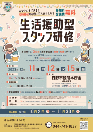2023年12月11日(月) 、12月12日(火) の2日間で日野市生活援助型スタッフ研修を開催いたします!