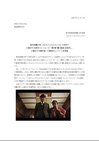 ぜひとも取り上げていただく、ご連絡差し上げました。情報公開日は11月3日 となります。