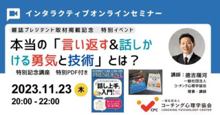 ★【雑誌プレジデント 取材記念】:本当の「言い返す&話しかける勇気と技術」(オンライン)*特別PDF資料つき