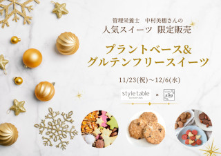 株式会社Peaceが運営するstyle table 吉祥寺パルコ店で2023年11月23日(木) 〜12月6日(水) に管理栄養士の中村美穂氏が店主を務める「aika」のプラントベーススイーツを販売します。