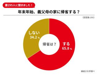 義父母と同居ではない既婚女性295名に「今年の年末年始に、義父母の家への帰省をするか否か」を聞いてみました。