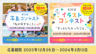 ACワークス株式会社(大阪市西区:https://acworks.co.jp/)が運営する素材サイト「写真AC」と「イラストAC」でコンテストを開催します。 グランプリには10万円分のAmazonギフト券をプレゼント!応募期間は2023年12月26日(火) 〜2024年2月13日(火) です。